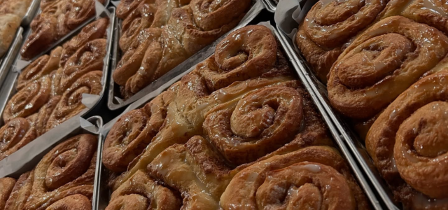 Indulge in giant, freshly baked pillowy-soft cinnamon buns made with only the finest ingredients. Each bun is generously swirled with cinnamon and topped with a mouthwatering icing sugar glaze that's infused with vanilla.
